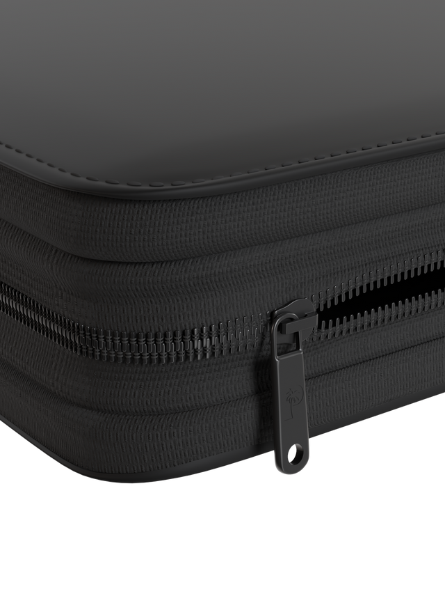 - Durable steel zip closure